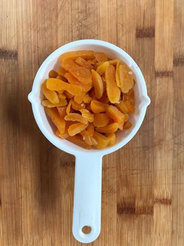 A: The ingredients include vegan cookies, dried apricots, cashews, and coconut cream, among others.